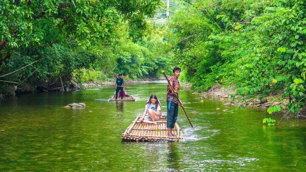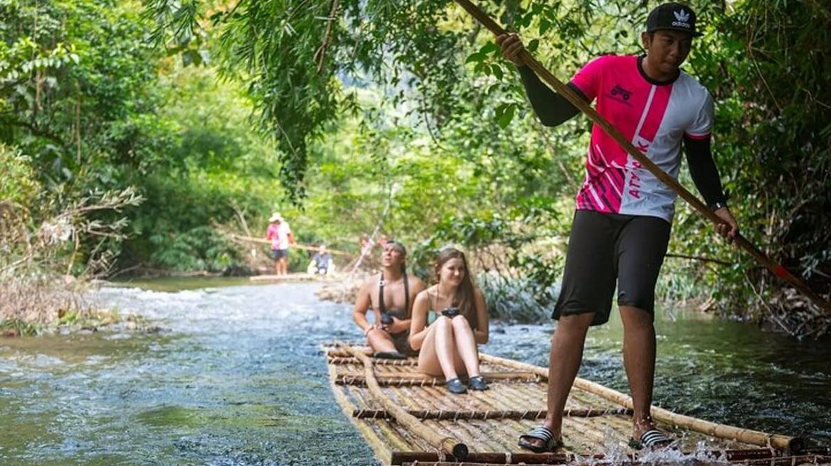 - Pick up from hotel 07:30–08:00 - Visit Suwankuha Temple (Monkey Cave) - Bamboo rafting - Visit Sea Turtle at Phang Nga Naval Base, Third Naval Area Command - Thai food lunch, fresh fruits by the season, drink - Elephant trekking in rainforest – 30 minutes - Elephant bathing – 15 minutes - Jungle walk to waterfall - Transfer back to hotel 16:00–17:00