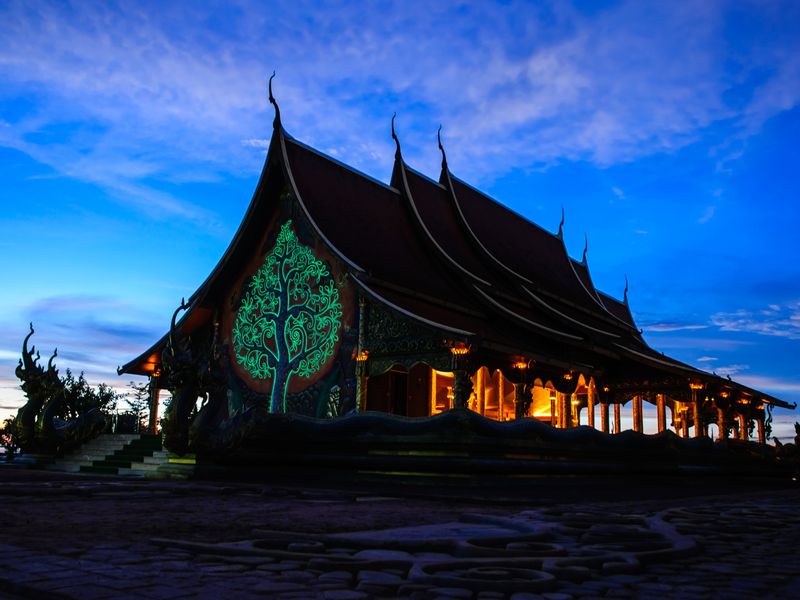 Literally translated as "The Glowing Temple", Wat Sirindhorn Wanaram Phu Prao or simply Wat Phu Prao boasts its luminous Tree of Life fastidiously carved on the back gate of its chapel. The one-of-a-kind carving absorbs daylight during the day and gives off the mesmerizing glow at night. While the best time to see the illuminated tree would be from 6 to 8 pm, the architectural gem of a temple itself is also worth visiting during the day.