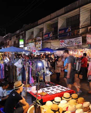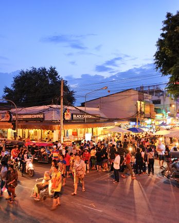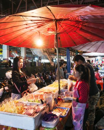 Experience a delightful evening in Chiang Mai! Join us at Chiang Mai Gate for a refreshing fruit smoothie and a taste of northern Thai specialties like Khao Soi and Papaya Salad. Explore the vibrant Wua Lai walking street for unique handmade crafts and souvenirs. Let's make memories together!