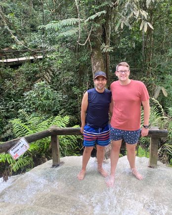 We arrive at Bua Tong Sticky Waterfall and begin our climb! You'll be amazed at how relatively easy it is to climb the limestone rocks. It feels like a hardened sponge when you actually step on the surface!
