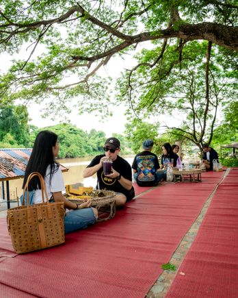 Arrive at "Baan Tha Rit," the highlight of your tour. This stunning location near the dam boasts breathtaking scenery
